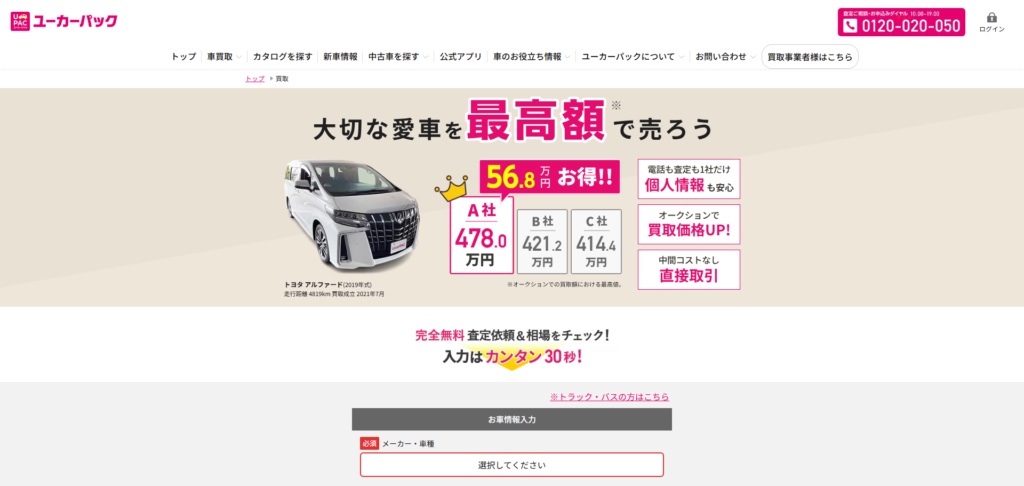 - 最大10社に一括で査定依頼ができるため競争が働き高額査定が出やすい