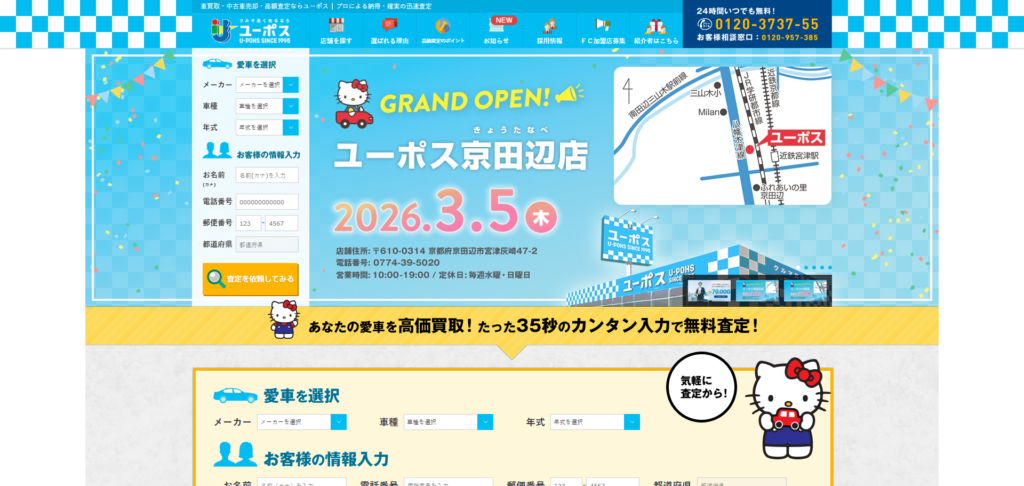 ユーポスは西日本を中心に店舗展開する買取業者で、純正以外のカスタムパーツやドレスアップ車も査定で評価しやすい点が強みです。他店では改造扱いで減額されやすい装備でも、プラス査定につながる余地があるため、こだわって仕上げた車を手放す人に向きます。
