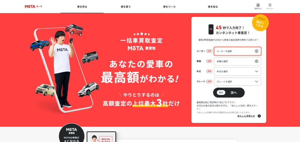 MOTA車査定は、一括査定でありがちな申し込み直後の電話ラッシュを避けたい人向けに設計されたサービスです。最大20社が査定に参加し、その中で高額査定となった上位最大3社とだけやりとりする仕組みのため、効率よく比較を進められます。
