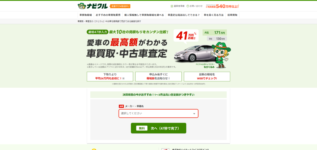 車をできるだけ高く売りたいなら、複数の買取業者を効率よく比較できる一括査定サービスの活用が有効です。なかでもナビクル車査定は、短時間で相場を把握できる手軽さと実績の多さから、多くの利用者に選ばれています。初めて売却する方でも流れが分かりやすく、比較から売却までスムーズに進めやすい点が特徴です。